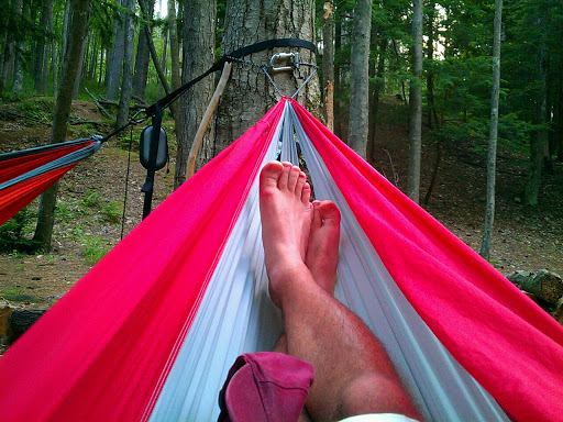 Collect the fire wood. Get water. Attempt to purify water with a UV Steri-pen that was out of batteries. Play music on Josh’s iPhone. Rearrange the camp fire ring so it wasn’t too close to the hammocks. Snack on beef jerky and Clif bars.