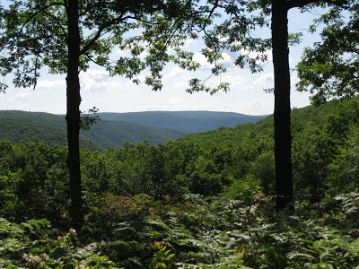 Eventually, the trees and ferns of the BFT gave way to warm sun and a small clearing. But if you weren’t paying attention, you’d likely walk right off a steep mountainside into Slate Run below you. We rested, gazing into the valley below and the steep slopes beyond.