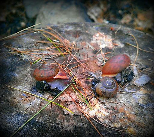 | Land snails saved from the fire ring. |