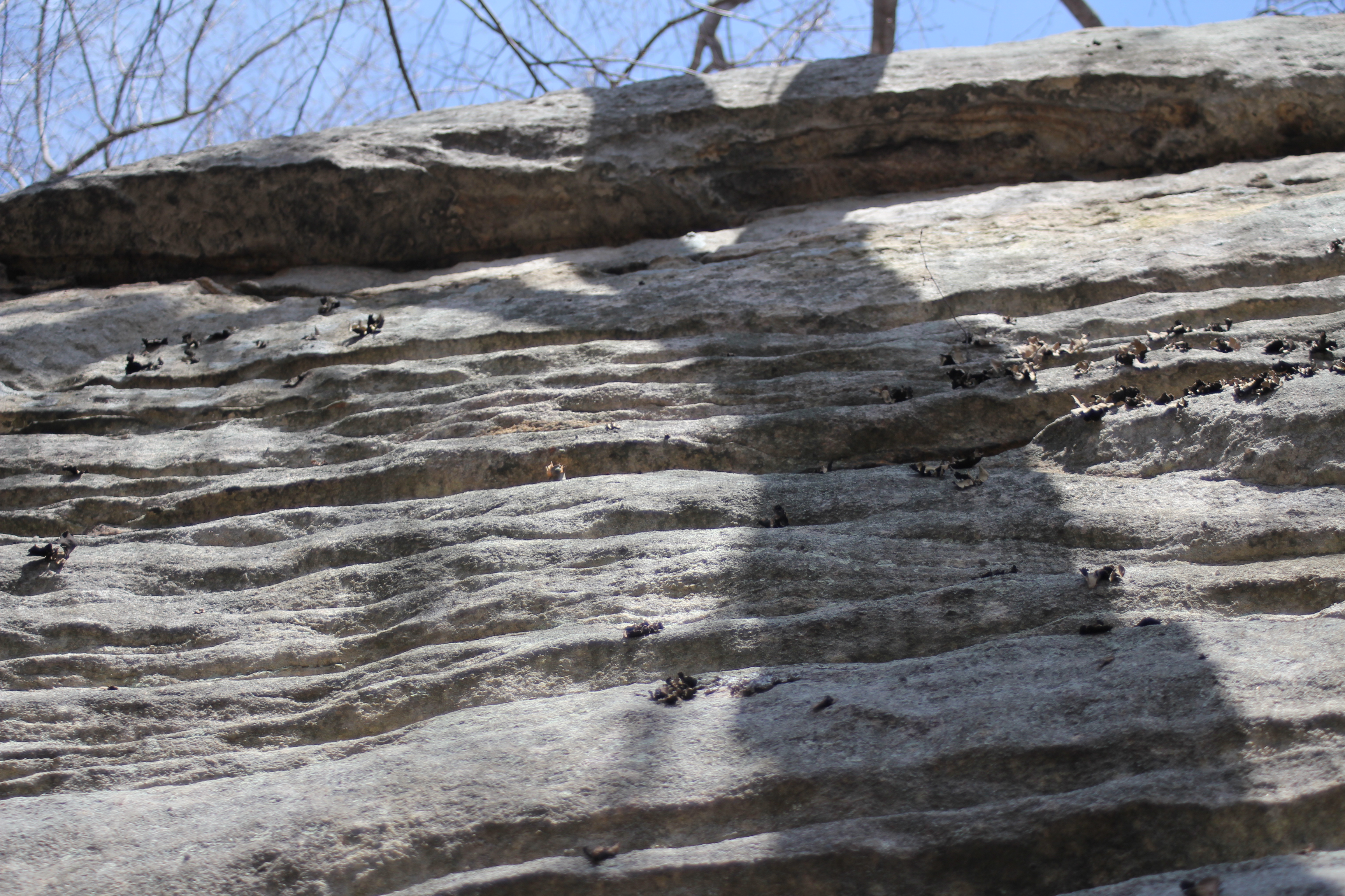 You can see rock ledges and crags on the sides of mountains from miles away on the interstate in winter.