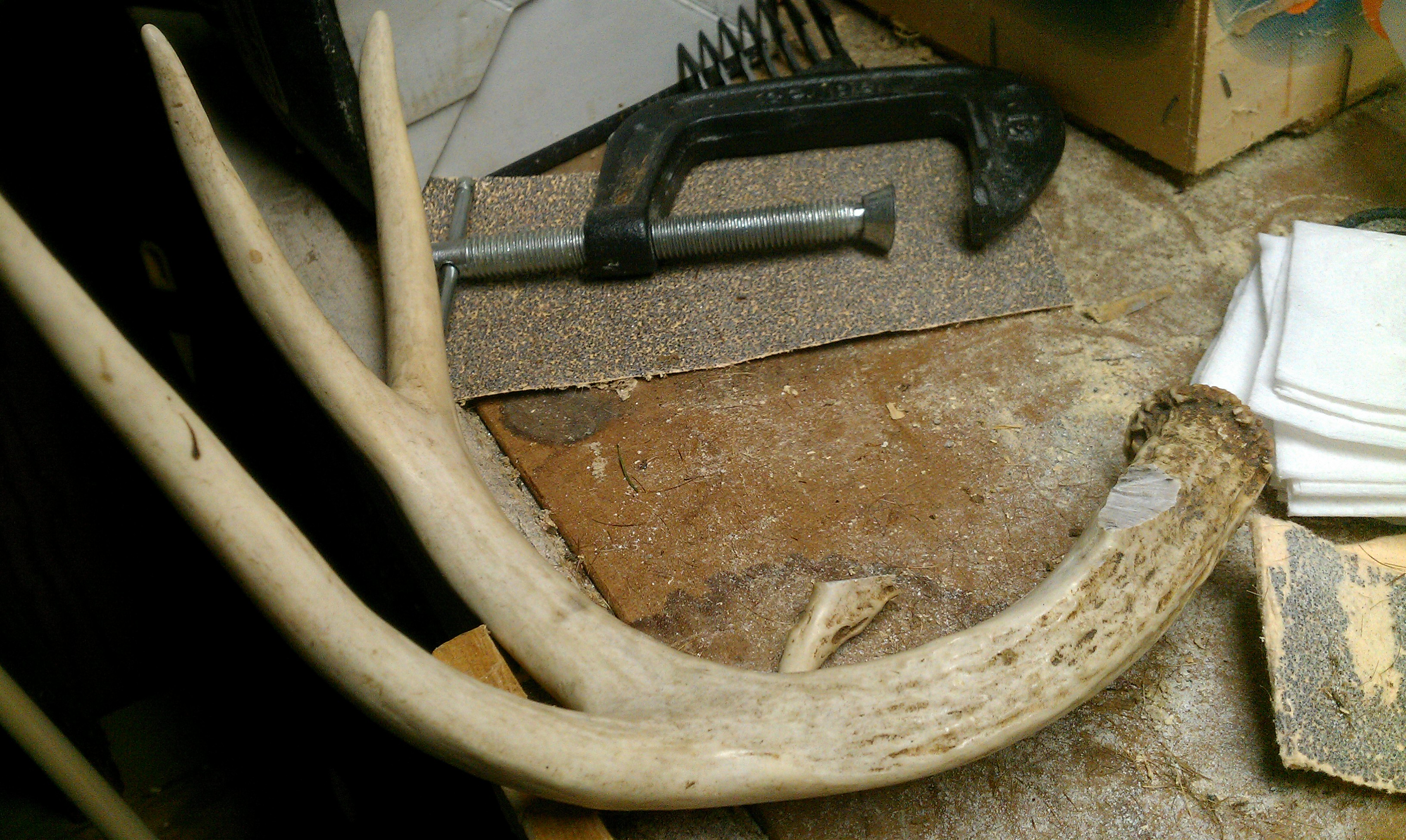 - Sturdy work bench, multiple clamps and wood planks – These are a necessity unless you plan to do everything by hand, but I recommend it for ease and safety. Put wood between the clamp and antler to prevent damage to your new handle.