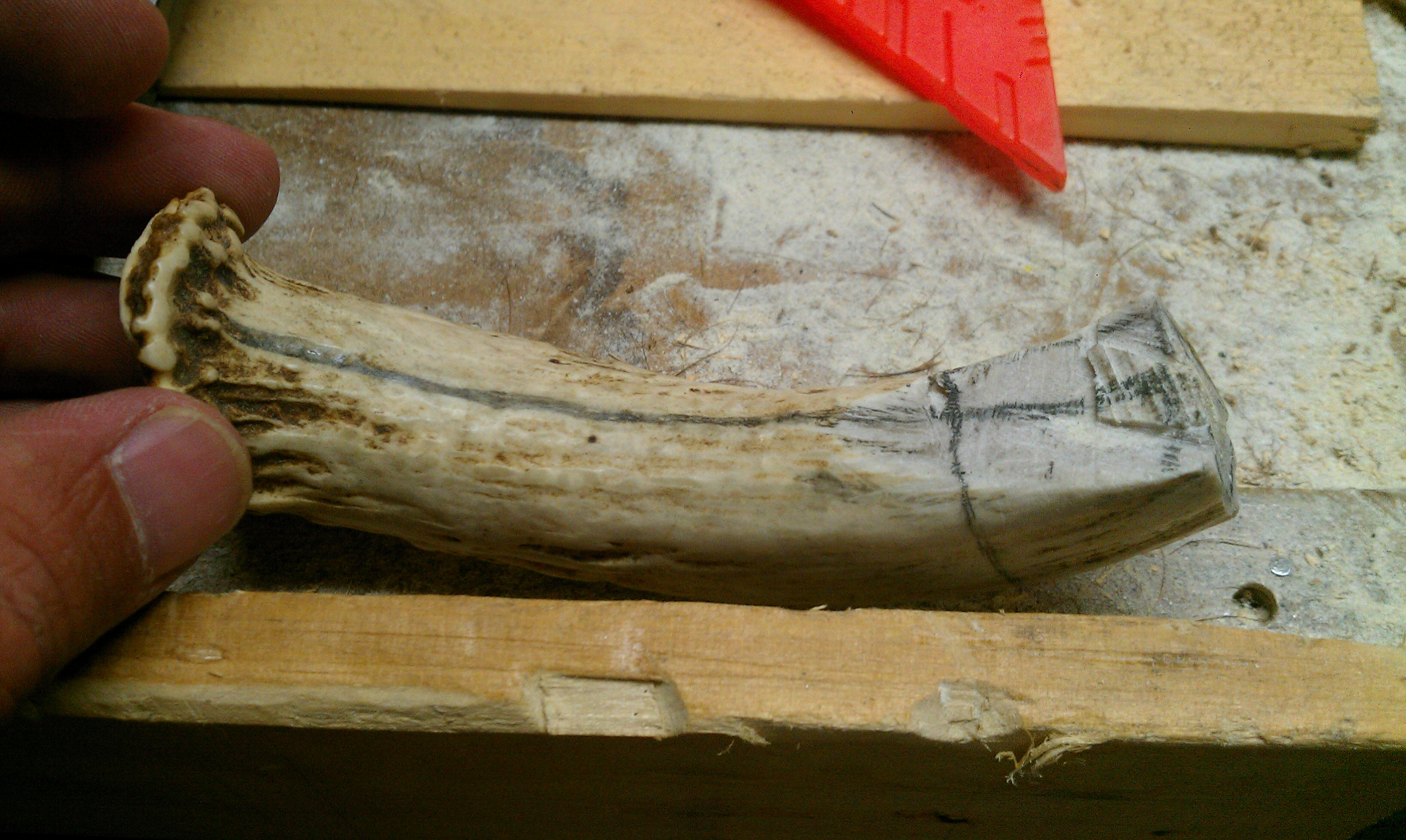 Once you’ve decided, start by cutting the antlers from the skull-cap, then measure an antler piece that will give you enough for your handle (including the knife assembly) as well as maybe a 1/2 to 1 inch extra to account for mistakes (trust me, you will make them if you’re not careful).