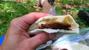 Dry sausage, cheese, pita bread – This is one of the heavier meals you could bring on the trail, but it’s packed with calories. That’s especially good on those winter excursions when it’s not only about fueling your day, but also your night. In cold weather, your body is going to use more energy keeping you warm when you’re not active, so you need foods that offer enough calories for both. My preferences: Boar’s Head Italian dry sausage, Kerrygold Dubliner cheese, and whole wheat pita bread. As a variation, sub beef jerky. Dried meats and most hard cheeses will keep for several days without refrigeration. Weight tip: cut the meat and cheese block in half for a three to four-day trek. Then you can ration out for your lunches and likely have some for snack while hanging around camp in the evening. Same with the pita. It’s a heavy, large bread. So don’t take the entire bag, just one pita for each lunch. Maybe an extra to accompany dinner. Then cut it into quarters to make it more compact; that will allow you to ration better too.