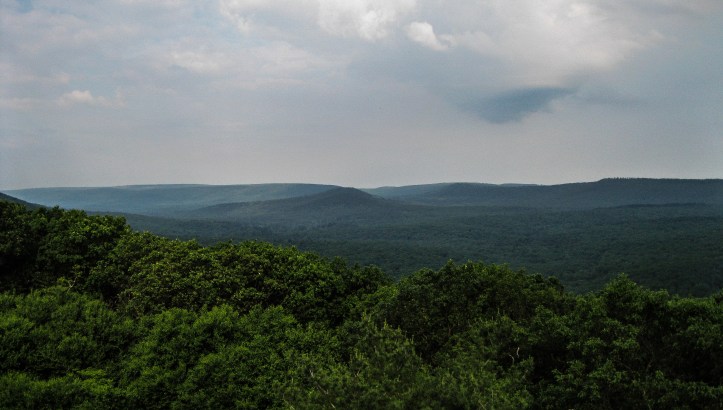 The second day, we started with simple breakfasts and got on the trail. The first stop was a little side jaunt to Pole Steeple for a panoramic view of Pine Grove Furnace State Park below.