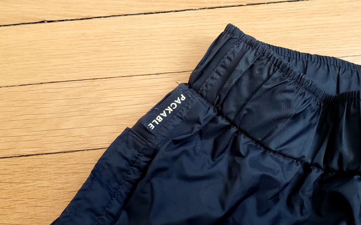 I’m in my kitchen, pulling out gear to prep for clearing my driveway. I noticed something on the inside of my waterproof pants. Looks like a pocket. The flap securely closed via hook and loop. A tag grabs my attention: “Packable.”
